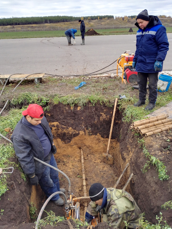 В местах, где необходимо организовать пересечение кабелями ВПП и РД, проводится открытая или закрытая прокладка труб. Рекомендуется использовать ПНД диаметром 50мм.