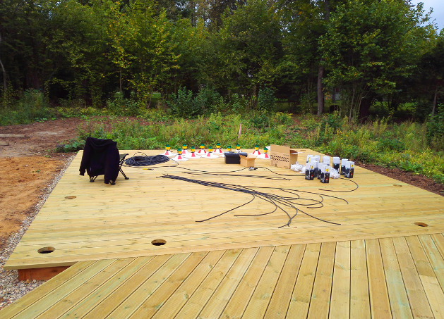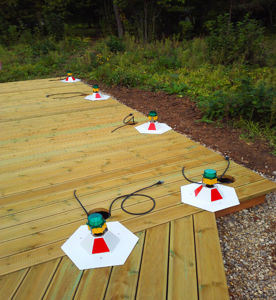После монтажа всех досок, в них, в местах установки конусов светосигнальных огней, нужно изготовить отверстия диаметром 150мм.