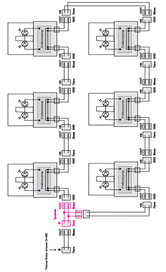 На кабель, идущий от системы управления, смонтировать разъем "мама". Первый огонь подключить к трем кабелям в отверстии (+ кабель от системы управления) при помощи тройника.