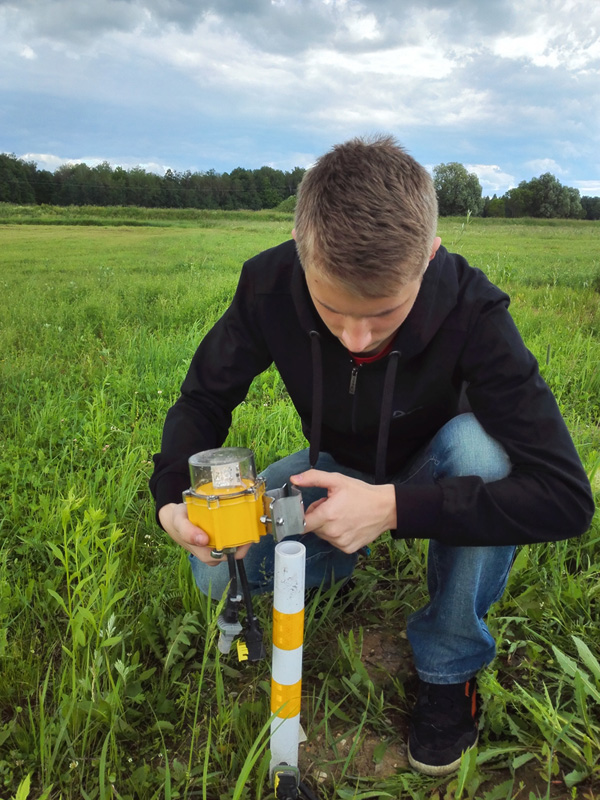 В точках установки опор типа "Игла" проводится забивка металлической части опор в грунт. Опоры забиваются парой монтажников, располагающихся под углом 90 градусов друг к другу, относительно забиваемой опоры.